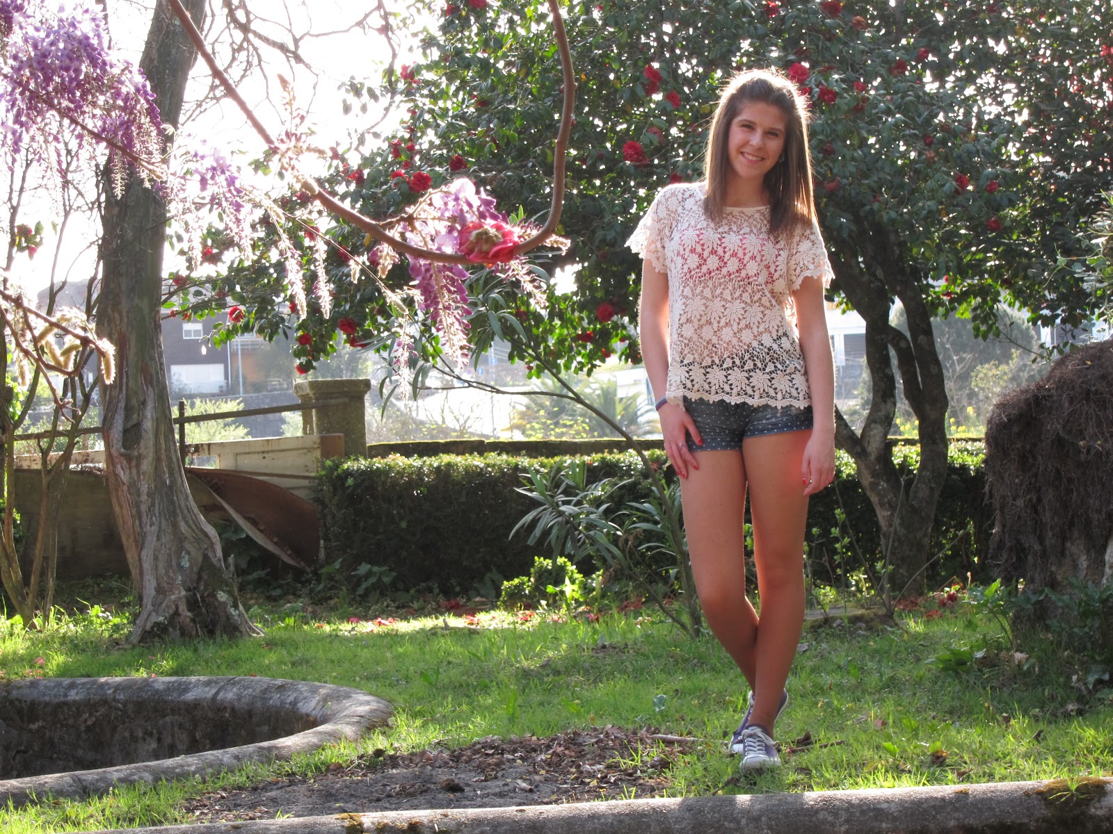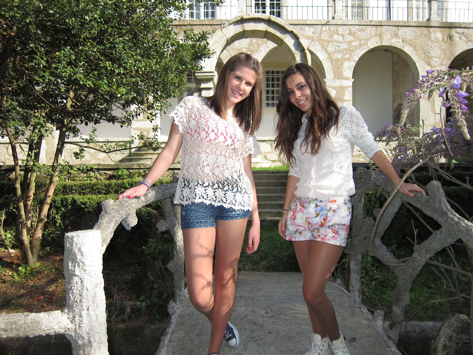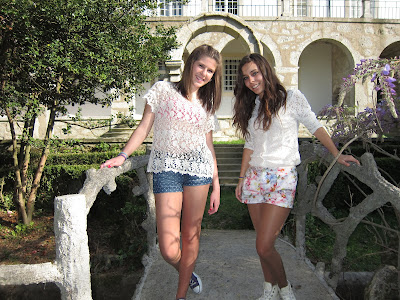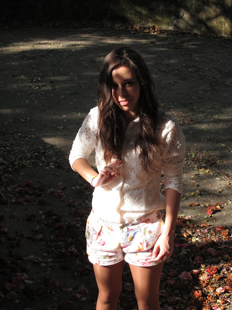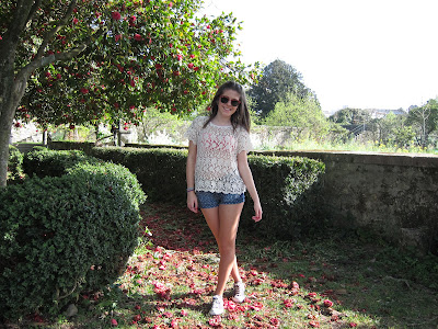 ( roupa da coleção atual: camisola de renda - pull&bear; calções floridos - zara; óculos de sol - ray ban. )