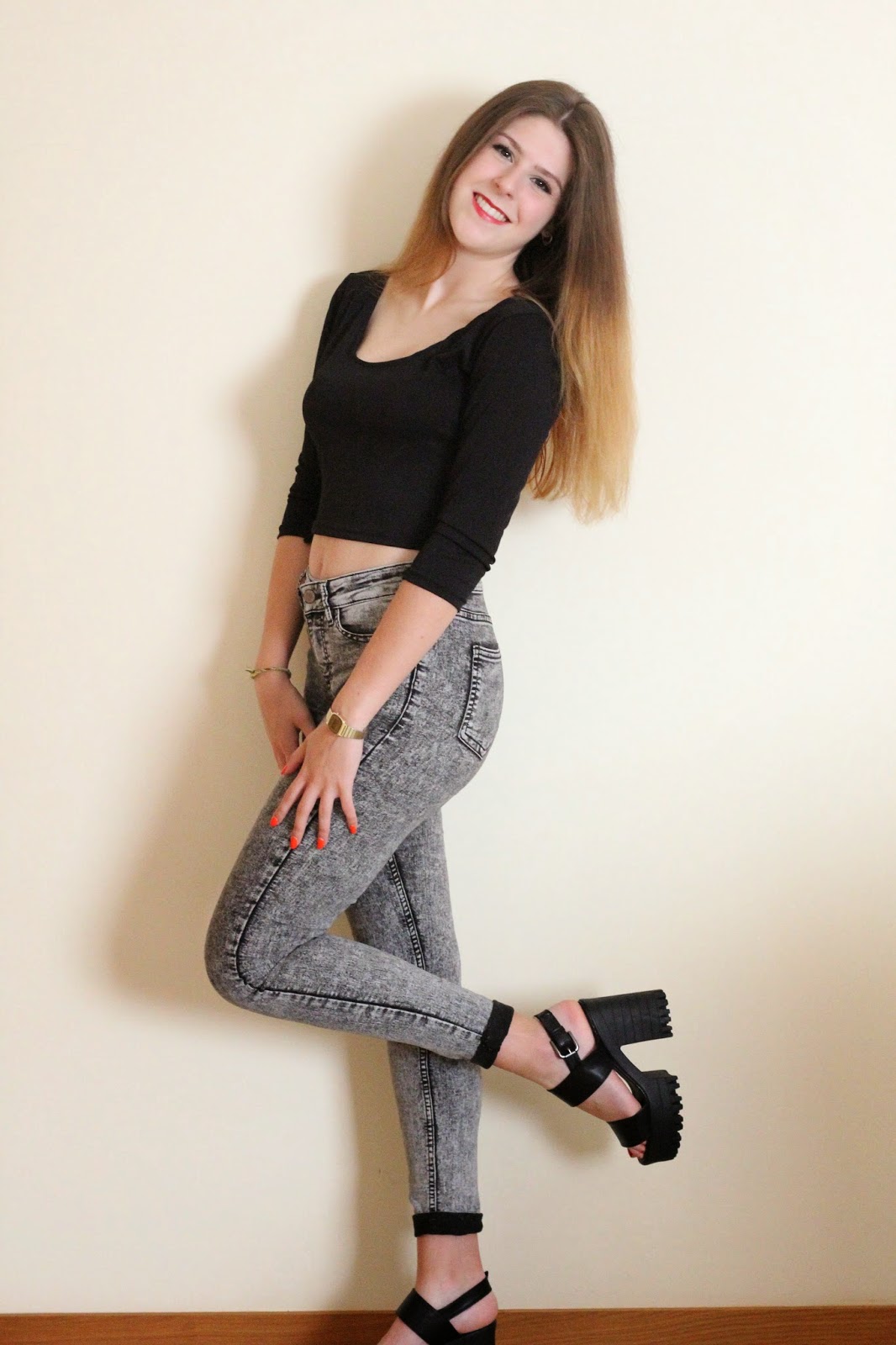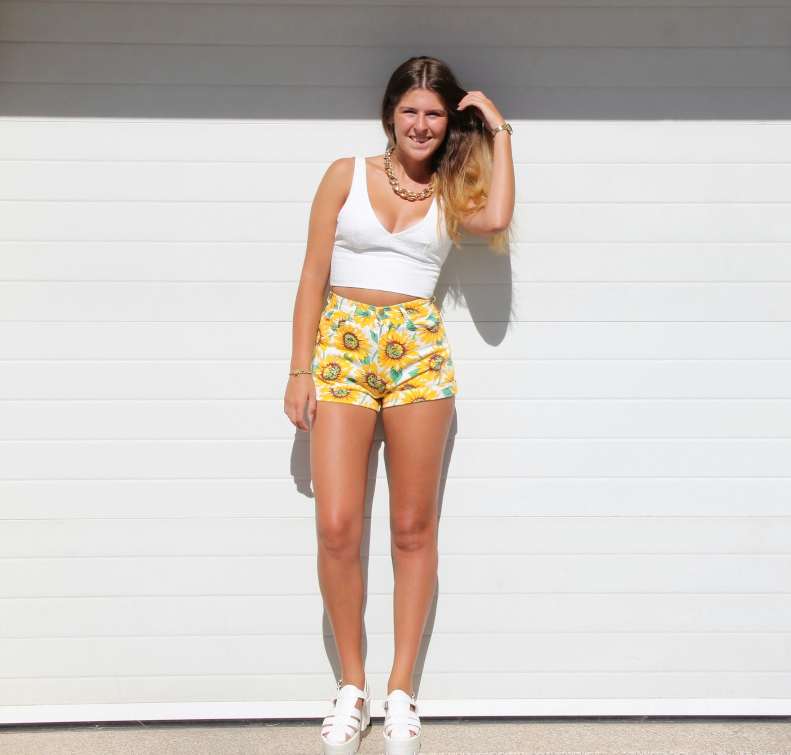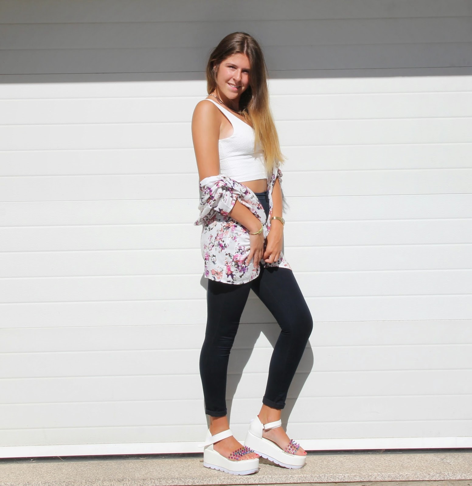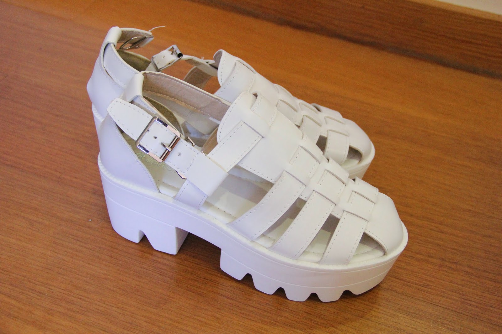 Adicionamos isso então ao branco, novamente com umas chunky sandals de plataforma.