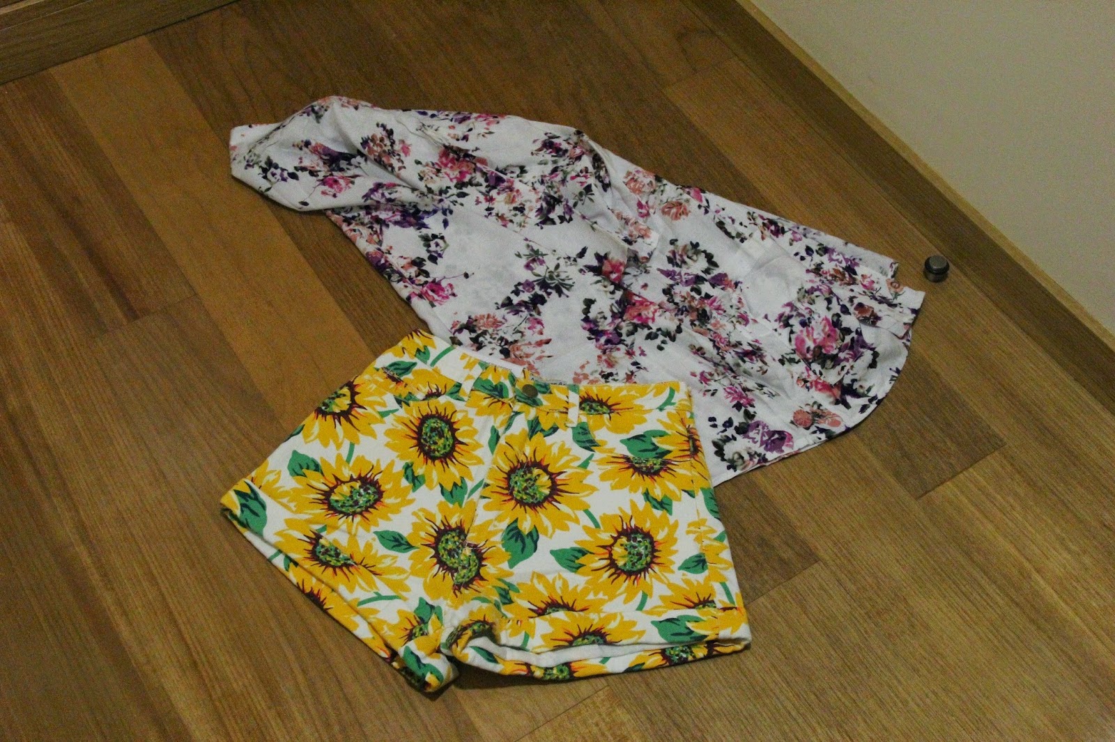 Neste conjunto é sem dúvida o uso do padrão de girassóis, que, obviamente, são amarelos, que é mais uma das cores de destaque.