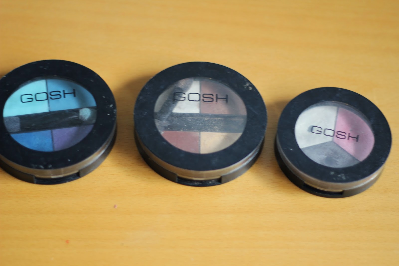 Para além disto tudo, têm ainda uma variedade de cores muito boa e, as da Kiko, definitivamente, custam menos de 10€, pois são sombras individuais, enquanto os trios e quartetos da Gosh já rondam mesmo os 10€.